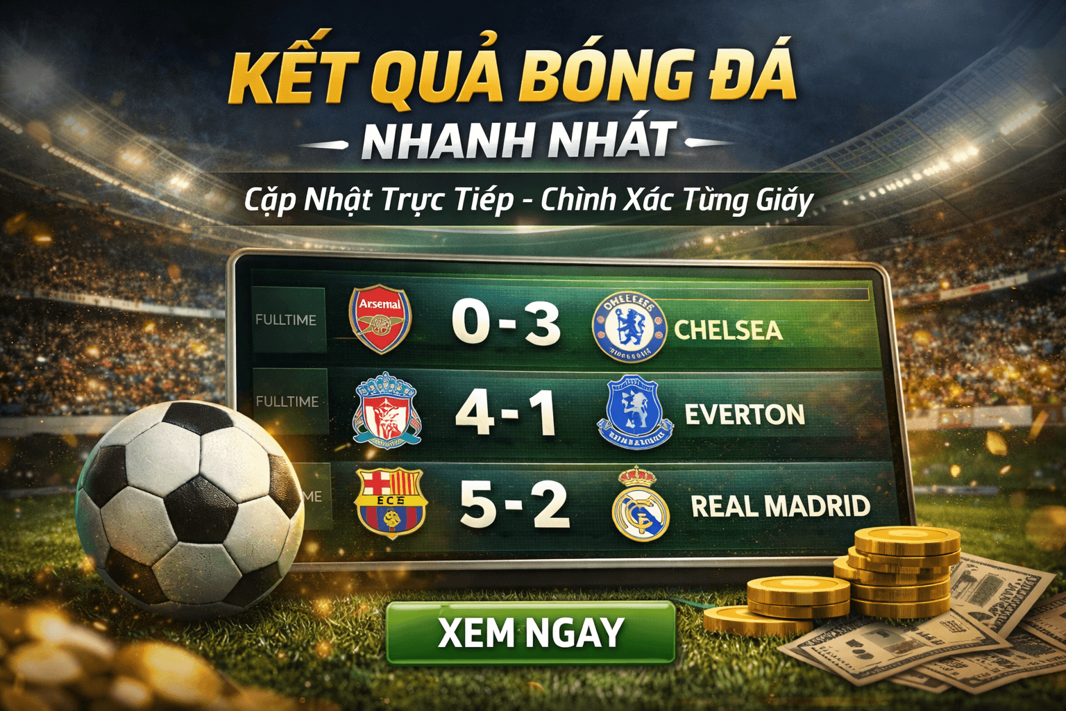 Cập nhật kết quả bóng đá mới nhất